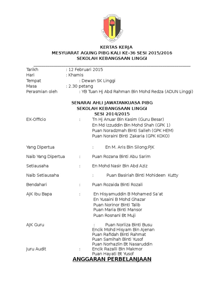Kertas kerja mesy agung 2013. SURAT jemputan rasmi ke Mesyuarat Agung PIBG kali ke 38 Sekolah Kebangsaan Seri Kelana menjadi viral di laman sosial Facebook dan Twitter kerana selain menjemput ibu bapa hadir ke mesyuarat PIBG ia turut merayu sumbangan 1 rim kertas A4 70 gm daripada ibu bapa pelajar. KERTAS KERJA MESYUARAT AGUNG PIBG KALI KE 20 DAN HARI ANUGERAH BESTARI 2014 1.