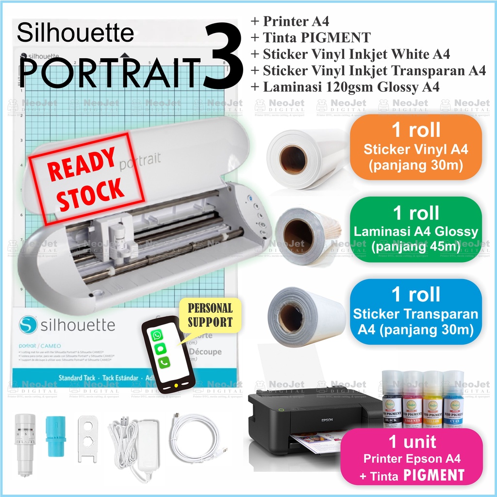 Jual Paket Mesin Cutting Sticker Mini Print Cut Printer A4 Vinyl Putih Transparan Laminasi Garskin Label Indonesia Shopee Indonesia